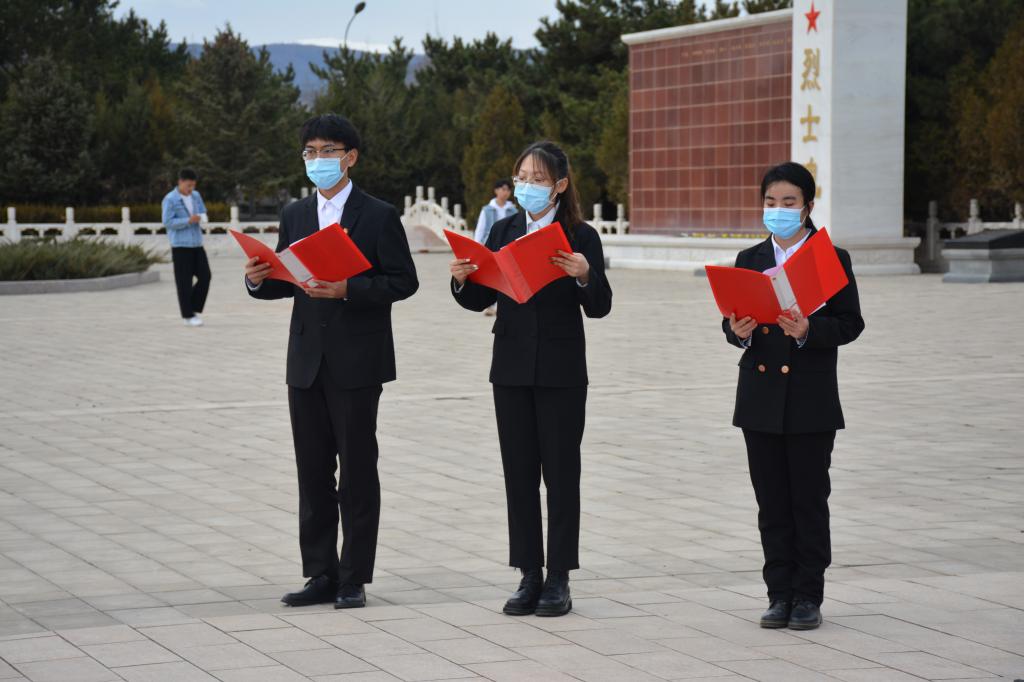 本次活动在庄严的烈士纪念碑下进行,在场师生向纪念碑敬献花篮、鞠躬默哀、寄托哀思,重温了入团誓词,主题演讲“烈士颂”表达了对先烈们的缅怀之情。