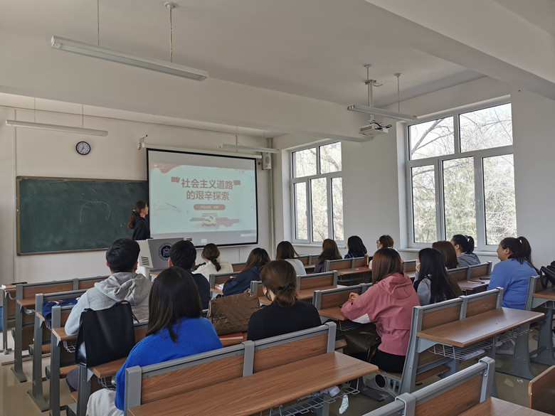 全体学生党员一起学习《社会主义改造的基本完成和社会主义制度的建立》和《社会主义道路的艰辛探索》两大内容。在学习活动中,党员学生深刻学习了社会主义制度、社会主义道路历史发展的丰富内涵。