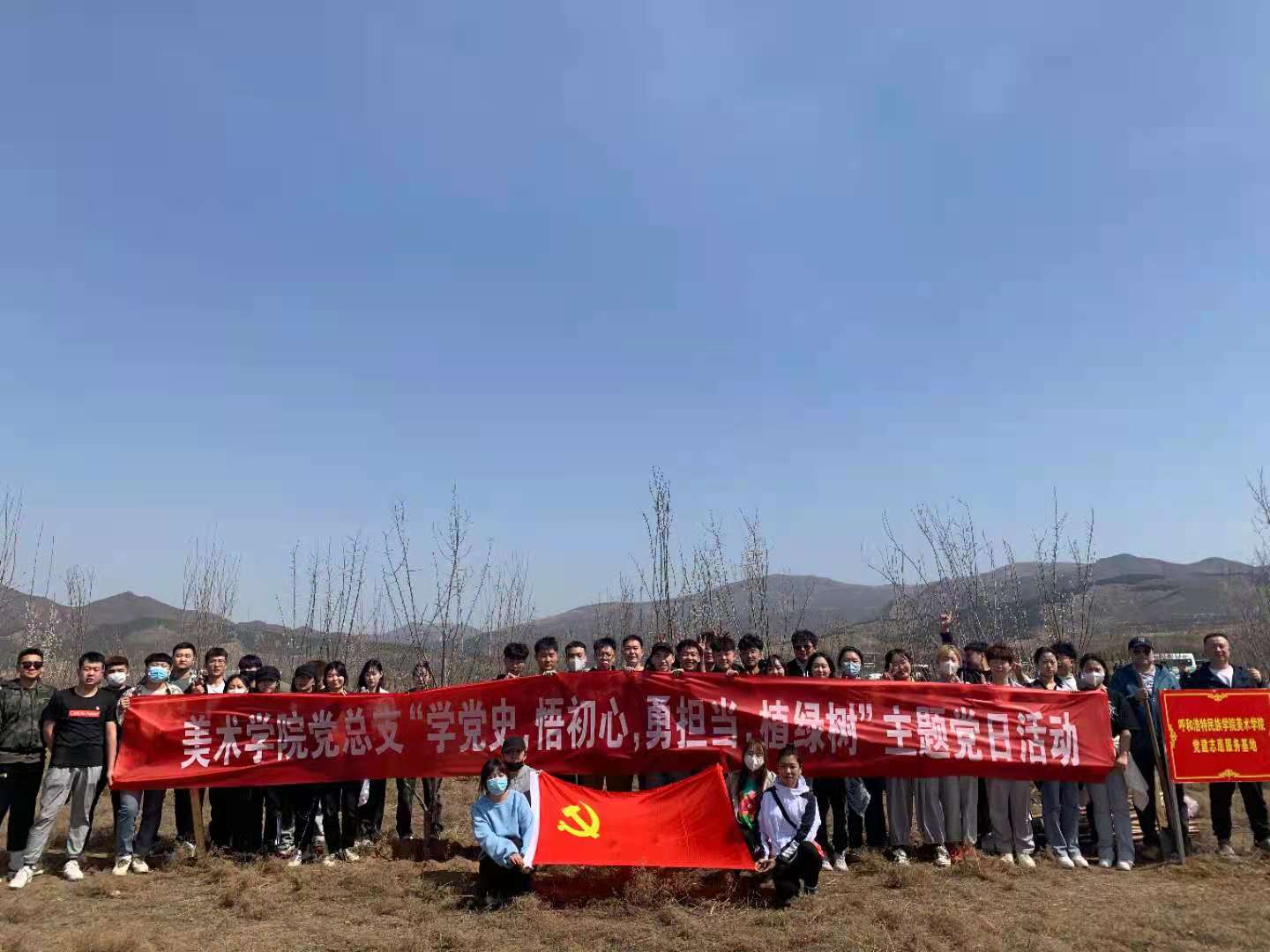 美术学院参加“学党史、悟初心、勇担当、植绿树”主题党日活动全体师生合影