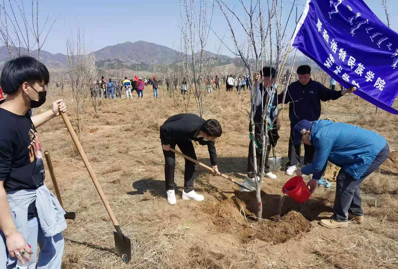 在圣水梁上,美术学院师生党员们撸起袖子,抡锄挖坑、手扶树苗、挥锹培土、围堰浇水,每个环节衔接有序,配合默契,干得热火朝天,呈现了一片“师生党员添绿意,挥汗植树党旗红”的繁忙景象,在早春和煦的微风中,100多株挺拔的树苗错落有致,昂首挺立,展现出勃勃生机。自2019年起至今,美术学院党总支在圣水梁累计植树4百多株,今年还举行了“best365官网中文版登录美术学院党建志愿服务基地”的奠基仪式,今后将这里作为学院的党建实践基地,长期开展植树造林活动。