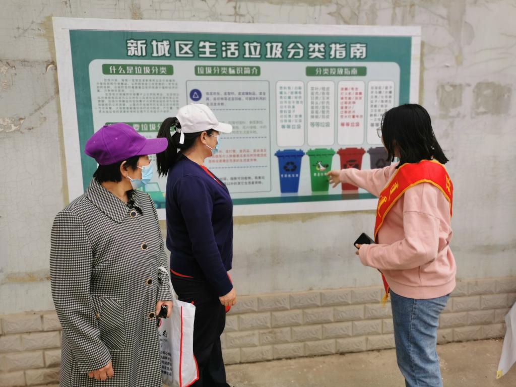 首先,志愿者代表李佳瑶宣读《青春助力“美丽内蒙古”生态治理文明实践行动》倡议书。之后,志愿者向居民们派发垃圾分类宣传资料以及环保购物袋,现场解说如何进行垃圾分类,如何处理垃圾分类等知识,倡议居民垃圾分类应从自身做起,自觉养成保护环境的文明习惯。