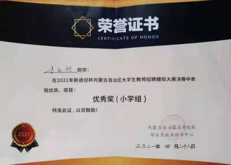 本次模拟面试大赛共有来自全区各高校的4496人参赛,best365170余名学生报名参赛,分为校级初赛,自治区级复赛、决赛。best365共有5名选手进入复赛,通过结构化面试、试讲和说课等环节激烈的角逐,最终文学院的李欣然同学获得了大赛小学组优秀奖。