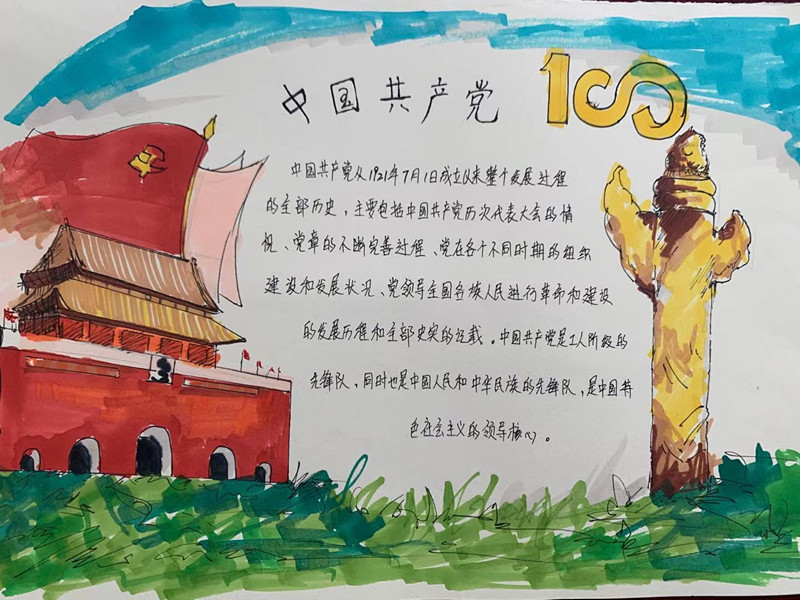 为庆祝中国共产党成立100周年,引导学生学史明理、学史增信、学史崇德、学史力行,培养学生爱党、爱国的情怀。4月30日,马克思主义学院学生党支部开展以“党史手抄报 播散红色种子”为主题的手抄报展评活动。 通过同学们精心设计、反复修改、用心装饰的19幅作品,展现出中国共产党诞生、发展、壮大的艰难历程。此次活动,不仅让大家回顾了中国共产党人艰苦奋斗、不屈不挠的革命精神,更为大家提供了为党献礼的平台,引领学生用自己的方法,表达对党、对祖国的热爱。
