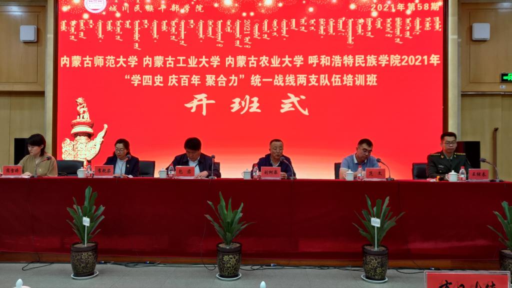 在中国共产党成立100周年之际,为了铸牢中华民族共同体意识,在统一战线中扎实深入开展“四史”学习教育活动,团结和凝聚统一战线力量,6月1日——6月4日,best365官网中文版登录联合内蒙古师范大学、内蒙古工业大学、内蒙古农业大学在城川民族干部学院开展2021年“学四史 庆百年 聚合力”统一战线两支队伍培训。学校党委委员、党委统战部部长包君带领学校统战干部队伍和党外干部队伍共19名教师参加培训。