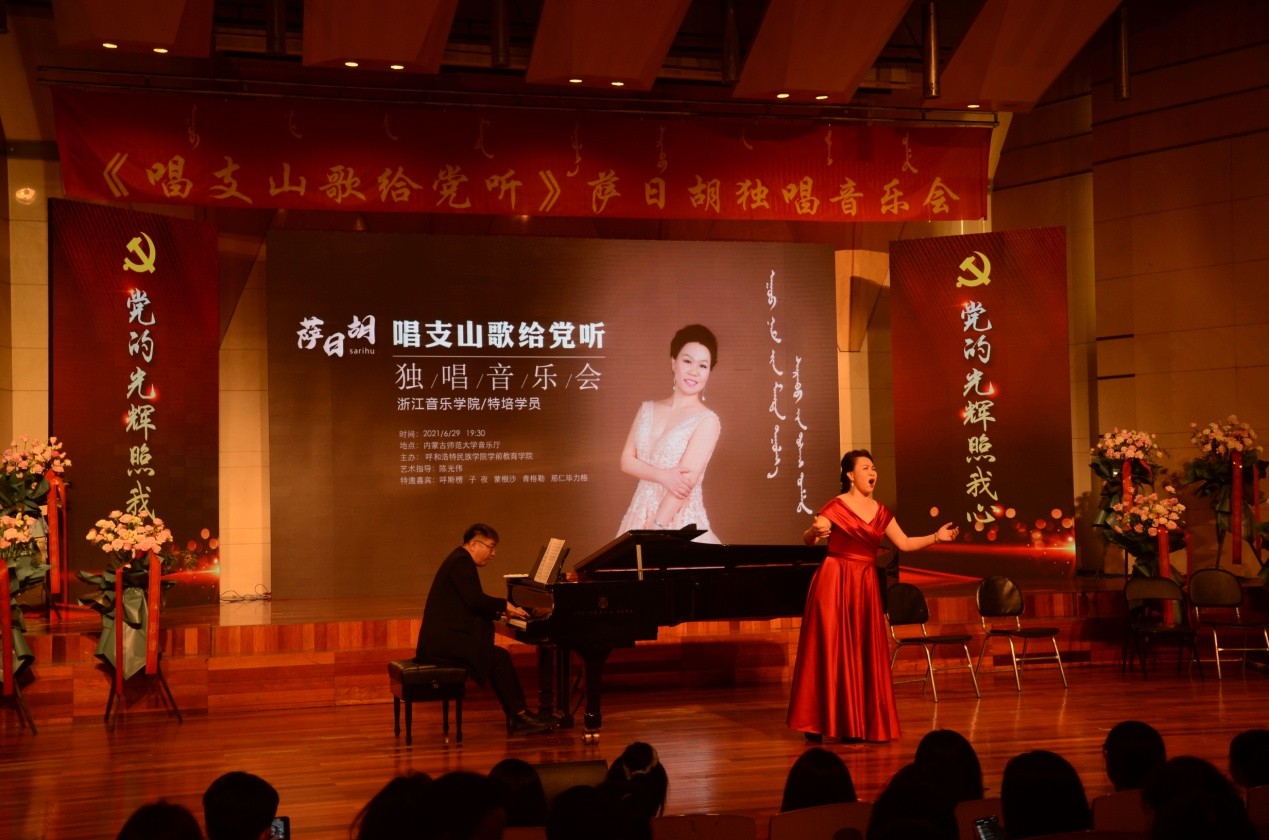 由best365官网中文版登录学前教育学院主办的“唱支山歌给党听—萨日胡独唱音乐会”于6月29日晚在内蒙古师范大学音乐厅精彩上演。