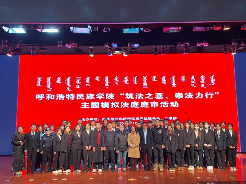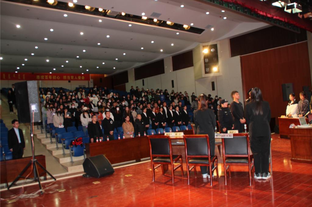 为深入贯彻落实习近平法治思想,持续深化立德树人的根本宗旨,围绕今年第八个国家宪法日主题“以习近平法治思想为指引,坚定不移走中国特色社会主义法治道路”,践行“八五普法”精神,学校团委、法学院于2021年12月7日下午在学校图书馆二楼报告厅举办了“筑法之基、崇法力行”模拟法庭庭审、法律咨询等法治宣传活动。学校团委副书记白银亮、法学院党总支书记乌兰其其格、副院长朝克图和各二级学院学生共500余人到场观看。