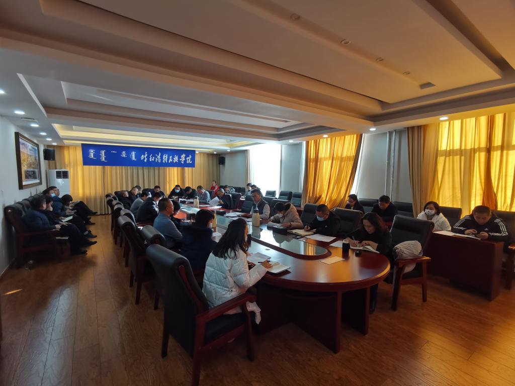 2021年12月15日上午,学校2021年12月大学英语四、六级考试工作部署会在办公楼二楼会议室召开。会议由教务处额尔敦布和处长主持,教务处、纪委监察专员办公室、学生工作处、后勤管理处、保卫处、学校医务室和二级学院负责人参会。