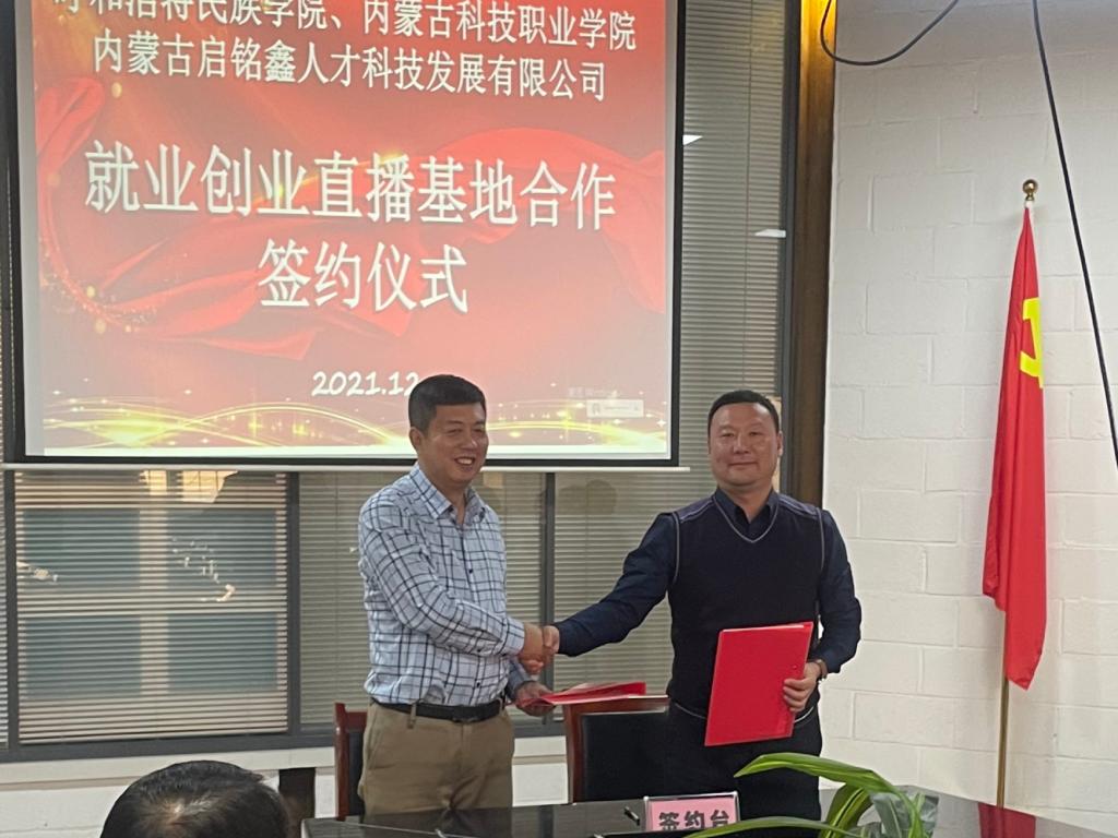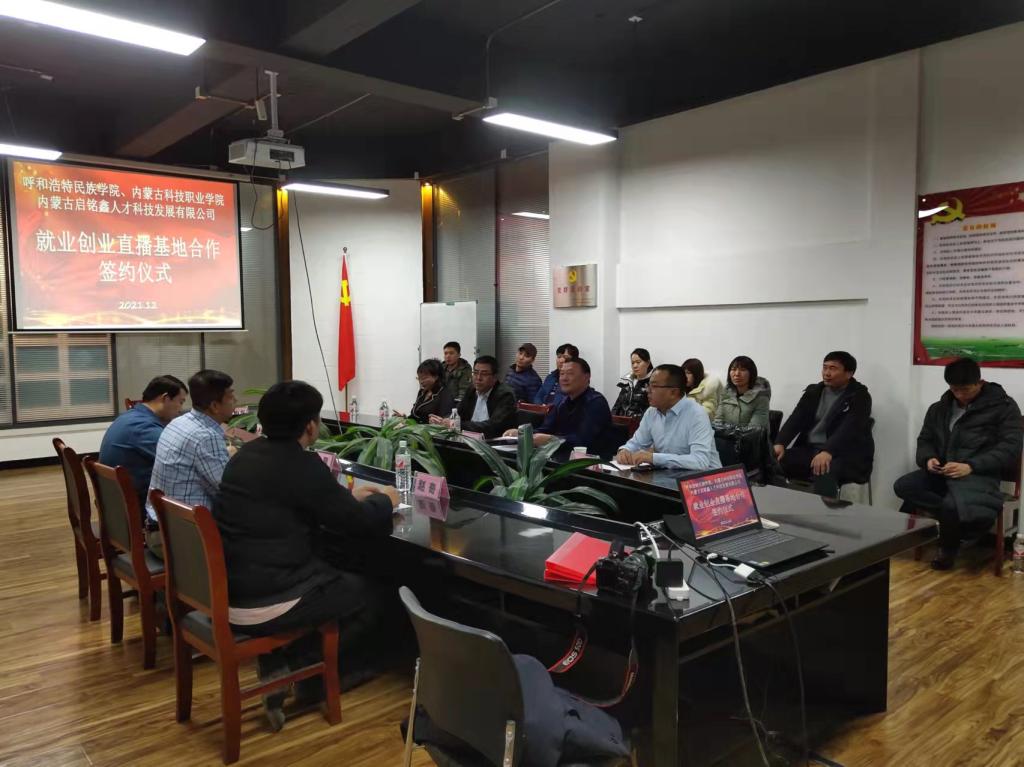 12月20日,best365就业指导处与内蒙古启铭鑫人才科技发展有限公司签定就业创业直播基地合作协议。就业指导处工作人员和外国语学院、经济管理学院等八个学院就业工作人员参加签约仪式。