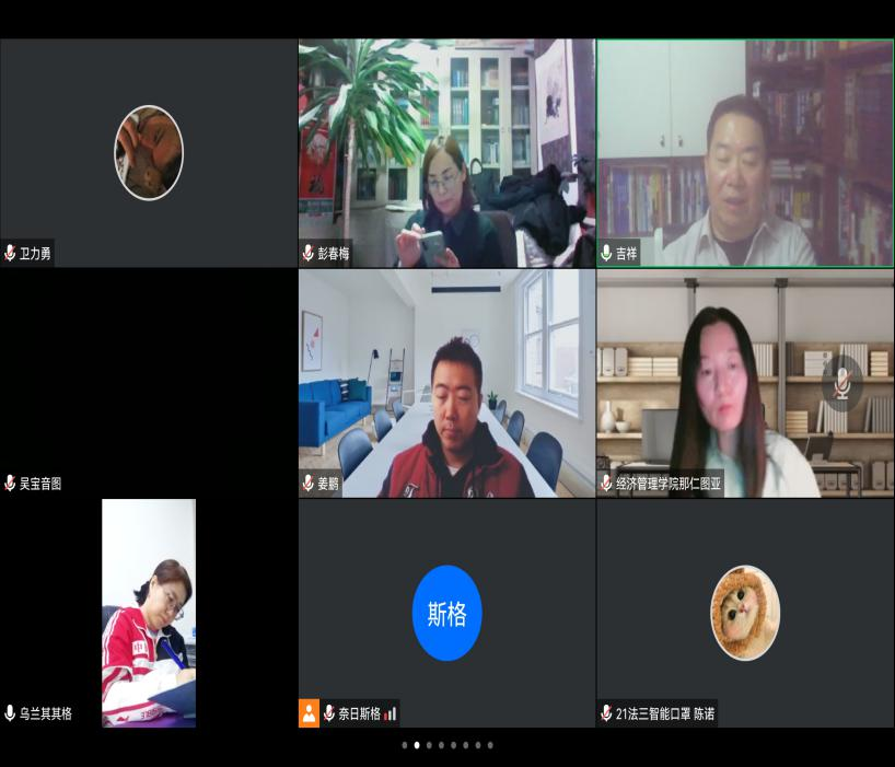 为进一步激发我院大学生创新创业热情,推荐优秀创业项目进入校赛,我院于5月12日采用线上视频的方式进行“第八届互联网+大学生创新创业大赛”选拔答辩活动。评委由赛事指导经验丰富的校内专家组成,包括计算机科学与技术学院冯培禄、民族学学院彭春梅、经济管理学院那仁图亚、音乐学院布仁套格套、法学院乌兰其其格、包玉柱、姜鹏等7位老师担任。