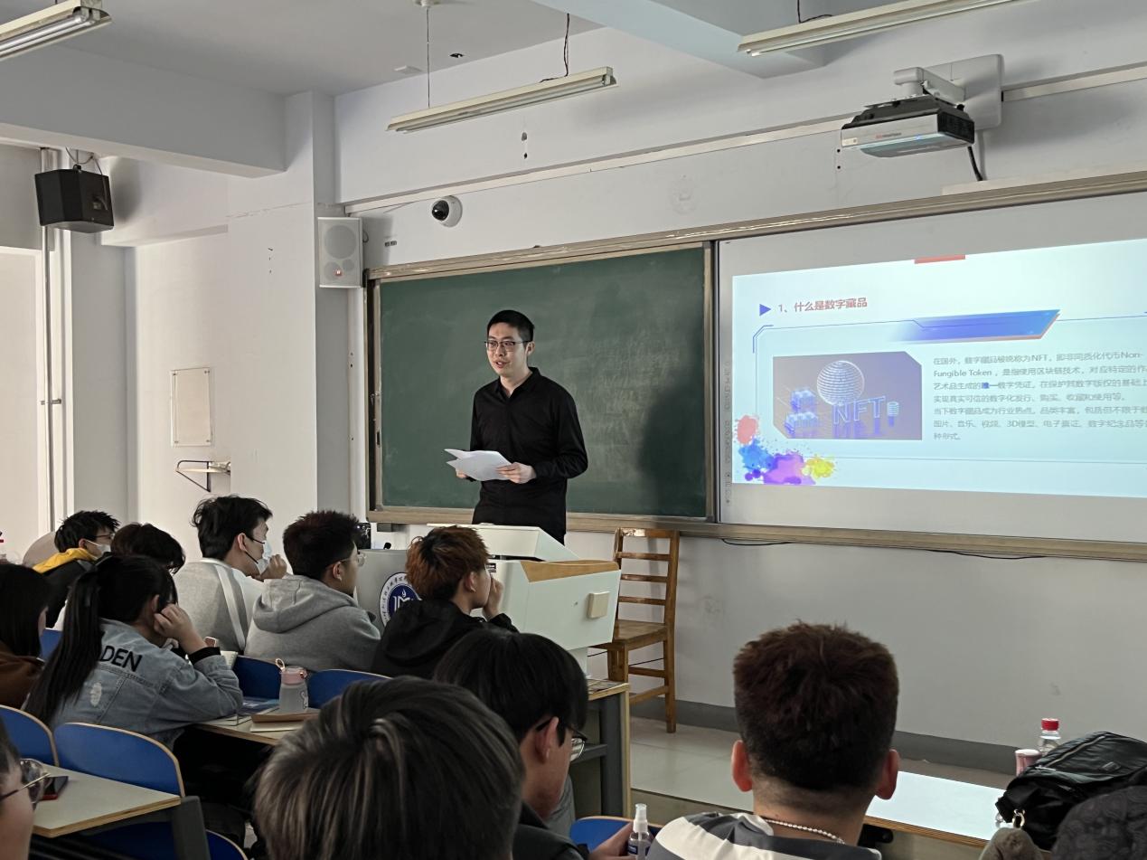 金丁萌先生首先介绍了数字藏品的概念以及行业背景。其次,分享了五个经典案例:“古籍里的瑞兽”数字徽章、“乡村振兴·看得见的改变”、“纸鸢探春”数字风筝、“时光相框—高考纪念藏品”和“历史性纪念时刻藏品”。最后,就数字藏品的意义、应用以及数字藏品的未来发展与师生进行互动交流。