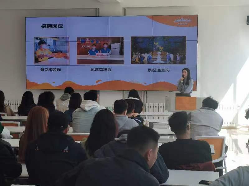 4月8日下午,体育学院邀请北京欢乐谷华侨城集召开2023届毕业生求职专场招聘会。学院140余名毕业生参加了招聘会。 招聘会上,北京欢乐谷华侨城集团人力资源部招聘主管王少辉介绍了本集团公司的基本情况,公司专员赵雪晴讲解公司运营情况以及薪资待遇情况等,在招聘会上有20余名同学递交求职简介并签订意向协议。