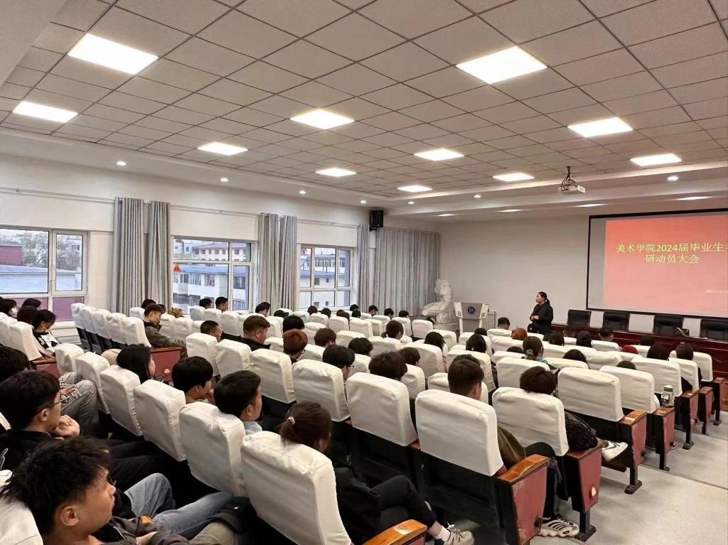 4月23日晚,美术学院组织2024届毕业生在美术楼四楼召开了考研动员暨全区第二届普通高等学校美术教育专业学生基本功展示大赛动员会。 在动员会上,美术学院副院长塔娜围绕考研的意义和紧迫性、考研科目、考研政策及如何报名等四个方面向2020级学生做详细解读,并鼓励同学们积极做考研准备,获得佳绩。
