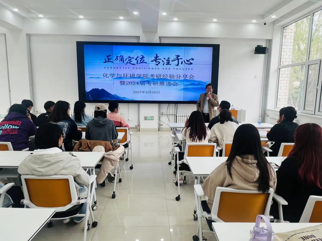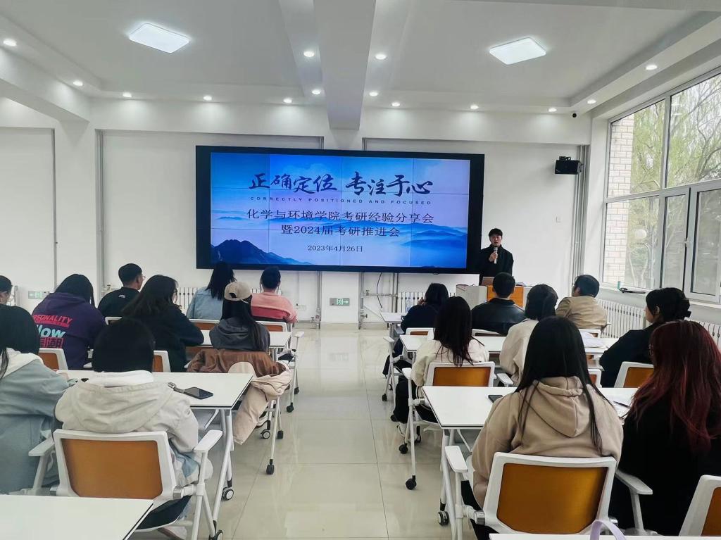 为进一步提升2024届毕业生的考研积极性,帮助考研学子调整心态,做好考研规划和复习策略,2023年4月26日下午,化学与环境学院在创业楼1楼会议室召开考研经验分享会暨2024届考研推进会。学院领导班子、教研室主任、2014届毕业班班主任,2024届考研学生参加会议。会议由辅导员陈斌老师主持。