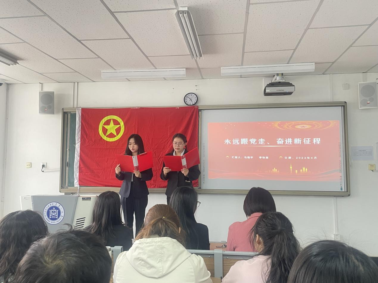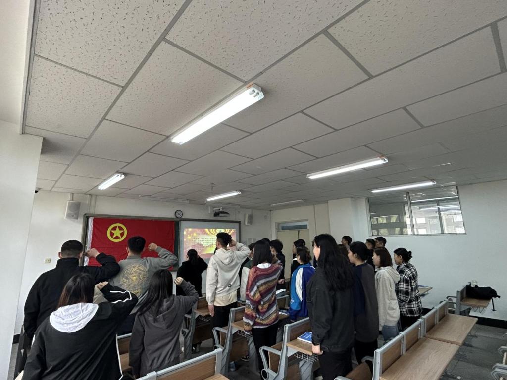 活动期间,全体团员齐唱团歌、重温入团誓词、学习了中国共产主义青年团章程第一章、“三会两制一课”基层组织生活制度、“青年马克思主义者培养工程”内容、大学生“挑战杯”赛事相关内容、《中华人民共和国国旗法》等。活动之后团员代表总结了在学习实践方面的不足,指出了今后的努力方向,参加主题活动的班主任老师和学生党员对支部的学习发展做出了规划建议,同时对团员们的生活和学习方面的问题进行了询问,并给予大家关心和问题的解决方案。