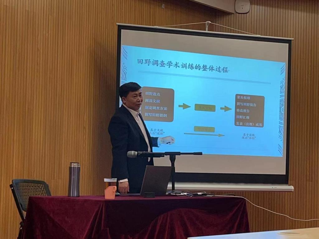 佟占文教授主要以田野调查的理论与方法为先导,重点讲述音乐田野调查的全要素及调查报告的一般格式,并结合个人田野实践和教学、科研经历,探讨田野调查在高校教学科研工作中的作用。