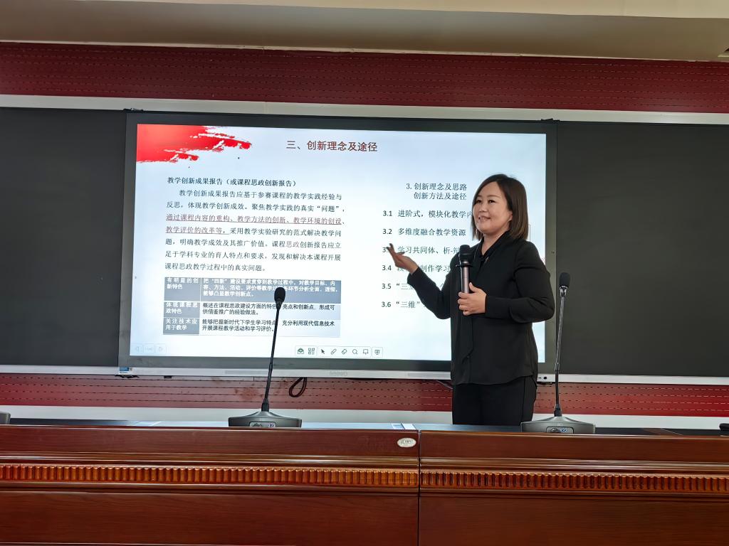 本次教学沙龙紧紧围绕课程教学创新这一主线,首先由2023年度自治区高校教学创新大赛获奖教师,新闻传媒学院乌兰副教授和外国语学院海拉博士先后结合参加区级比赛经历,从课程痛点的分析、课程内容的重构、教学方法的创新、教学环境的创设、教学评价的改革、教学资源的建设和团队攻关的策略等方面进行了详细汇报。