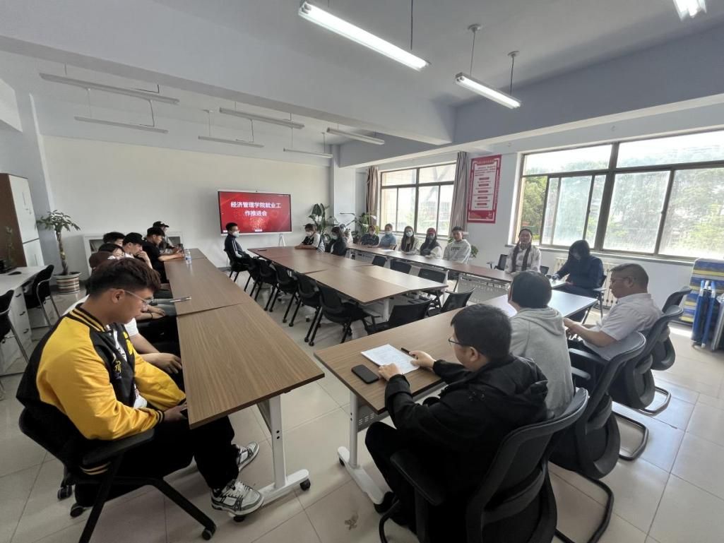 为使毕业生更好了解就业形势和就业政策,经济管理学院于5月25日上午召开毕业班班干就业政策推进会。学院党总支书记周双喜、院长包诺敏、辅导员华国庆及毕业班学生干部成员30余人参加了会议。 会议伊始,华国庆介绍了学院毕业生情况、就业环境、就业政策、就业途经等方面信息。接着包诺敏鼓励学生认清当下高校毕业生就业形势,改变就业观念,以线上、线下形式关注各类招聘信息并投递简历。 此次会议总结了就业工作方法、明确了下一步就业工作的总体安排和方向,为促进毕业生高质量充分就业保驾护航。