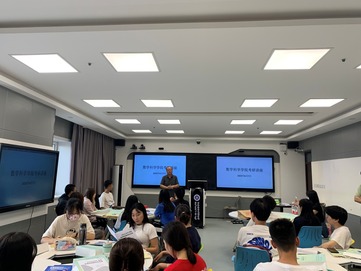 为帮助同学们进一步了解考研报考相关知识,明确自身发展规划,6月7日晚,数学科学学院邀请内蒙古大学郝建军老师开展数学专业考研指导讲座。学院2021级、2022级数学与应用数学和数据科学与大数据专业的学生聆听讲座。