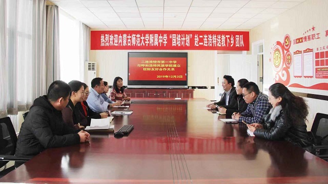 为了推进“不忘初心、牢记使命”主题教育整改落实工作,12月3日、4日,best365对外合作与交流中心主任那日苏、文学院院长崔凤珍、对外合作与交流中心国际合作交流科科长王磊、文学院对外汉语专业班班主任乌兰哈斯一行人员赴二连浩特市中小学搭建学生教育实习基地平台工作。