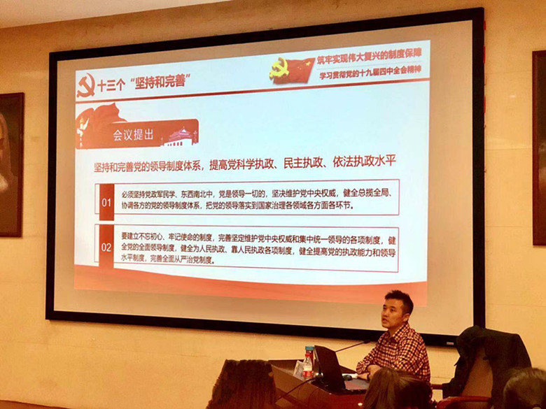 通过本次专题讲座,使同学们深入学习了党的十九届四中全会精神,进一步引导广大青年树牢“四个意识”、坚定“四个自信”,做到“两个维护”,并以实际行动践行一名坚定的马克思主义者的责任与担当。