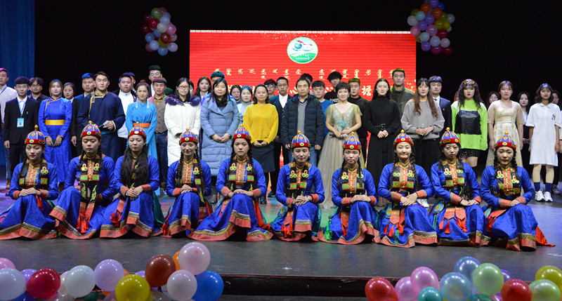为庆祝新中国成立70 周年,激发青年担当精神,丰富校园文化,展现爱国情怀,12月1日晚,化学与环境学院在学校演播厅举办了“敬终如始守初心,凝心聚力担使命”主题迎新晚会。化学与环境学院院长李福全、团总支乌依勒斯、专职辅导员陈斌、新生班主任包呈敏、昭日格、萨如拉以及全体新生观看了演出。