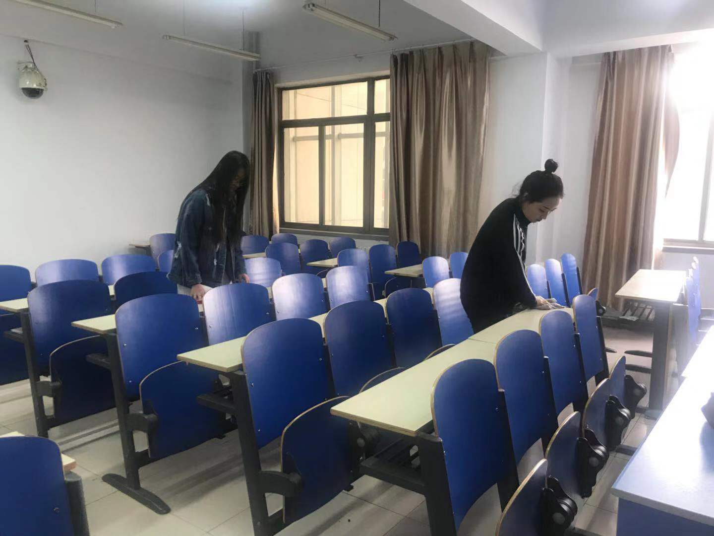 擦教学楼桌椅