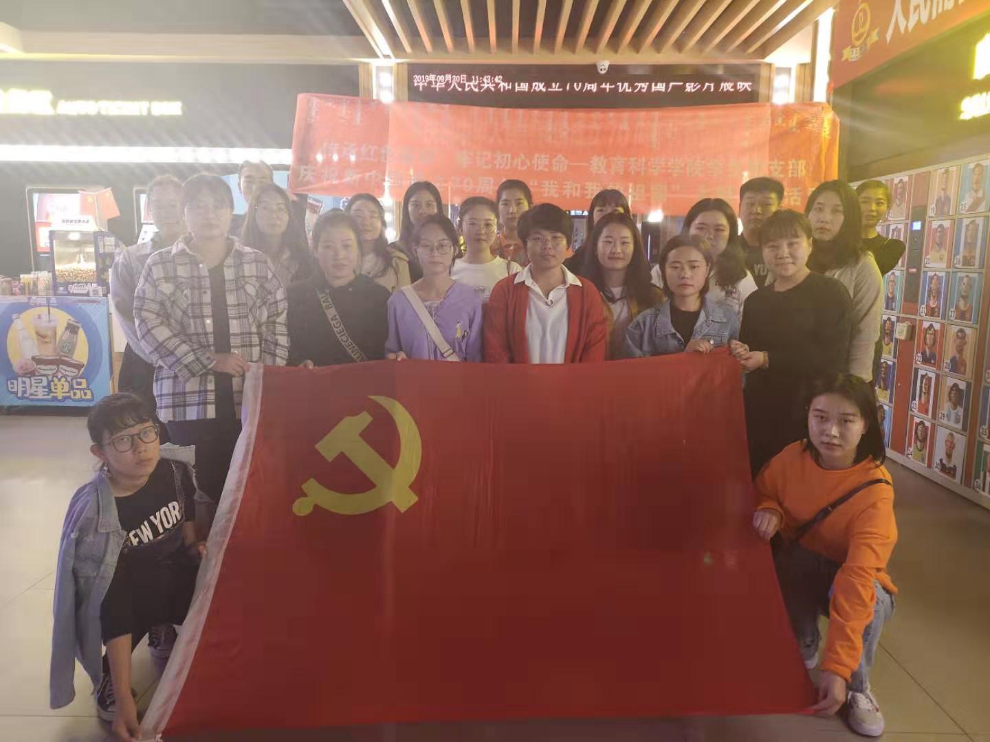 为庆祝中华人民共和国成立70周年,深入开展“不忘初心、牢记使命”主题教育,增强学生党员党性修养,9月30日上午9点,教育科学学院学生党支部书记安梅琴老师带领21名学生党员赴万达影城集体观看了爱国主义影片《我和我的祖国》。
