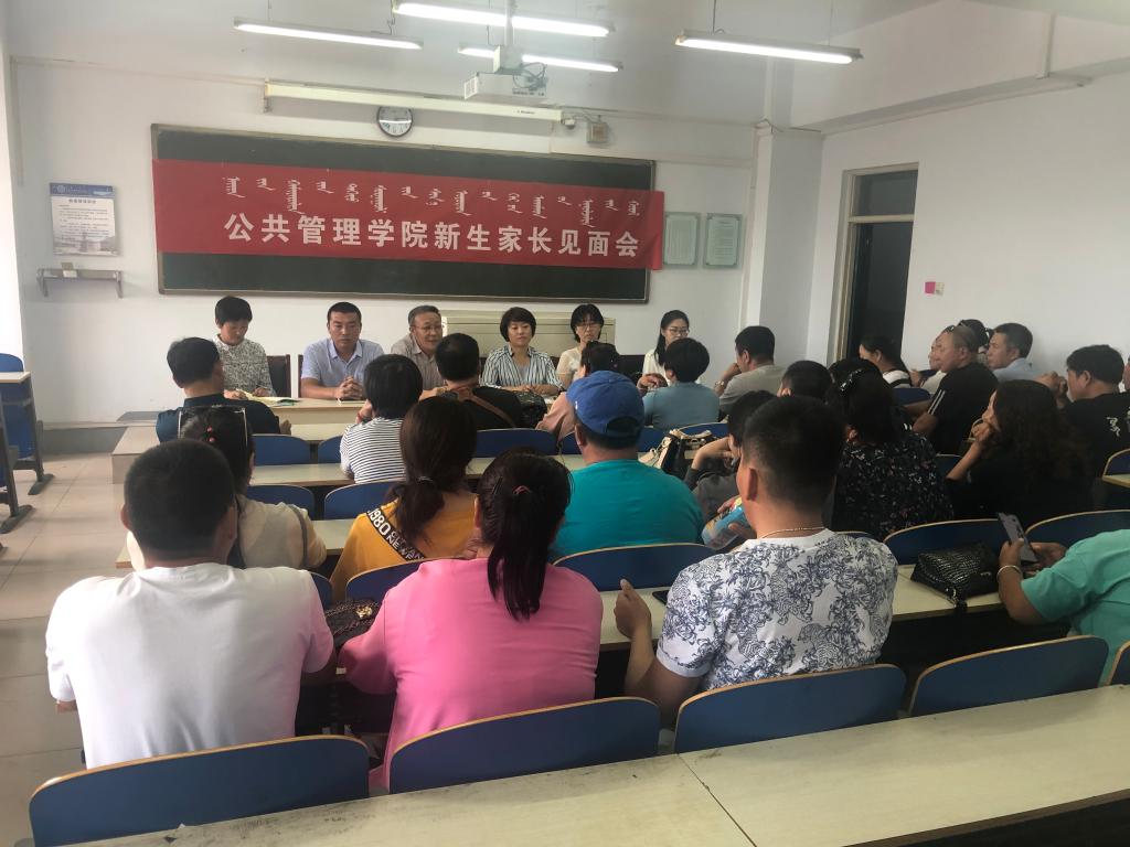 8月31日下午,在都林楼305教室召开了公共管理学院2019级新生家长见面会。吴宝山院长、额尔敦格日乐副书记、2019级新生班主任陈青春、周乌云及50余名新生家长参加会议,会议由党总支书记海霞主持。