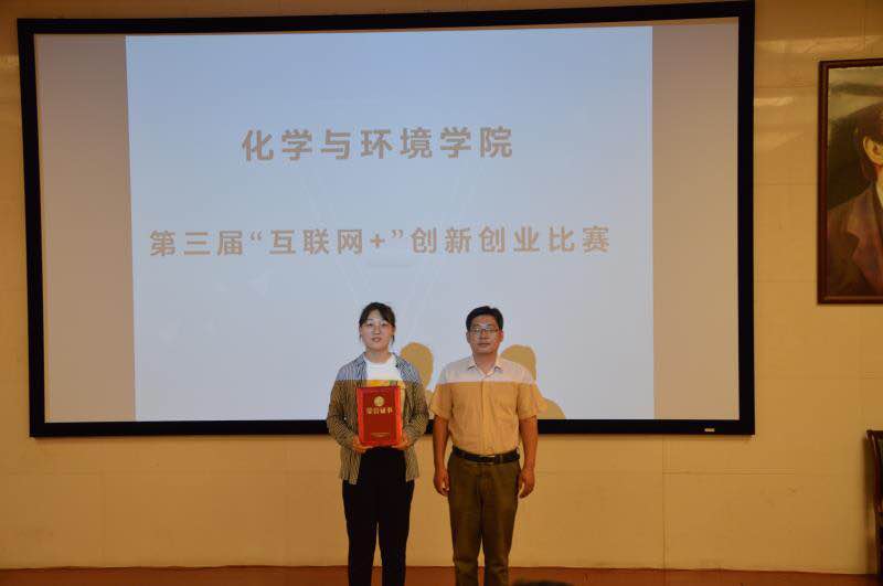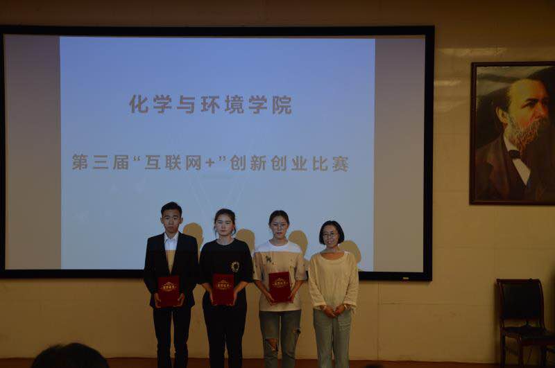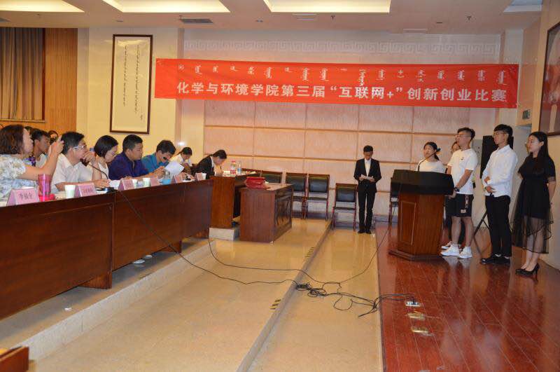 为了让更多的同学了解创业、参与创业、实现创业,营造创业文化氛围,激发当代大学生的创业热情,提高创业技能,为学校“互联网+”创新创业大赛选拔选题新颖、项目创意突出、有发展和投资潜力的好项目,6月20日上午,在图书馆一楼,化学与环境学院举办了第三届“互联网+”创新创业比赛。比赛邀请化学与环境学院党总支书记朱俊杰,化学与环境学院院长李福全、党总支副书记鄂亚彬、王开花副教授,团总支负责人乌依勒斯、专职辅导员陈斌担任赛事评委。