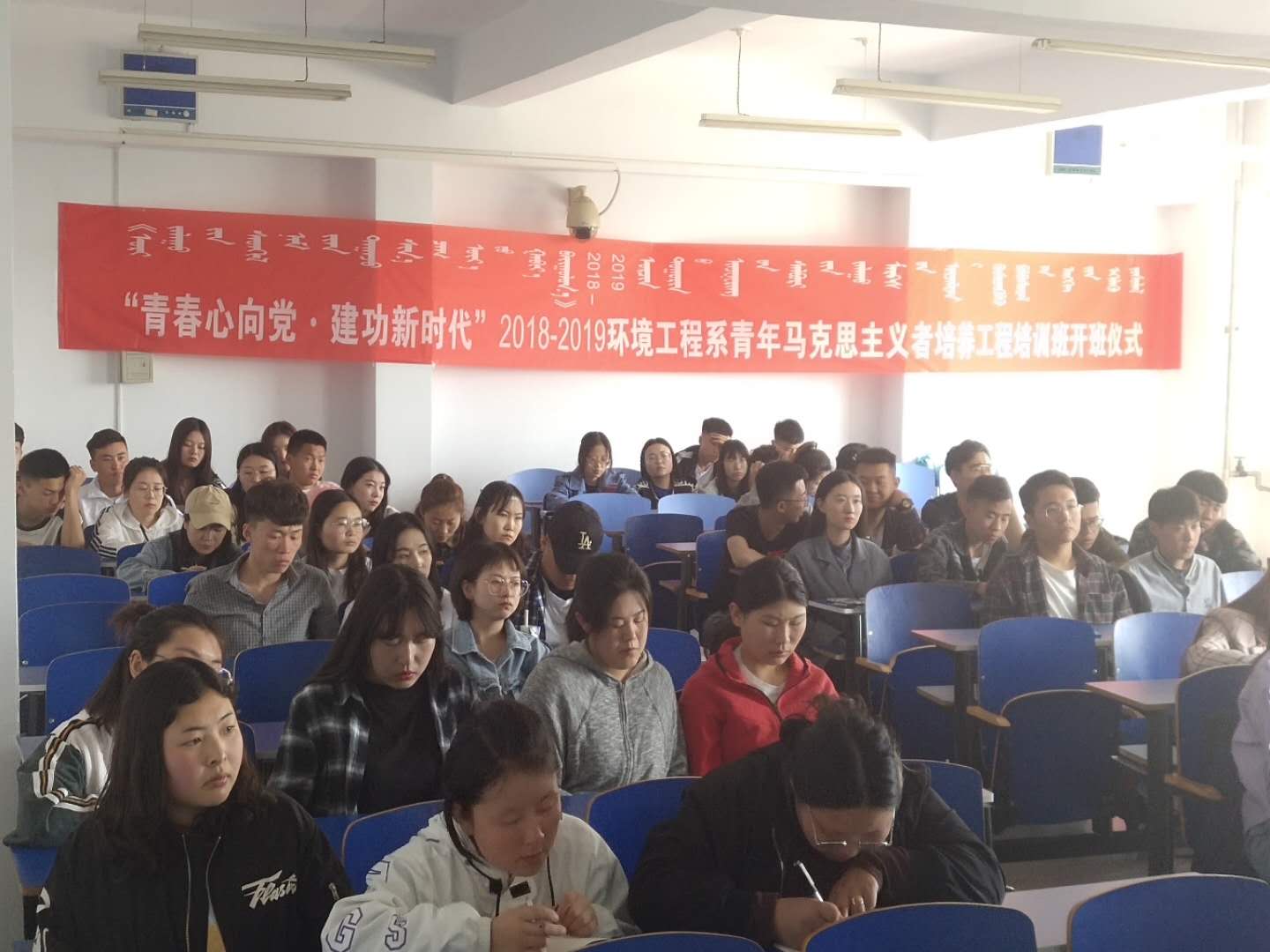 5月9日中午,在都林楼401教室,化学与环境学院举办了“青春心向党 建功新时代”青年马克思主义者培养工程培训班开班仪式,全院各团支部书记、组织委员、宣传委员、班长、学生会干部等共74人参加,仪式由团总支乌依勒斯老师主持。