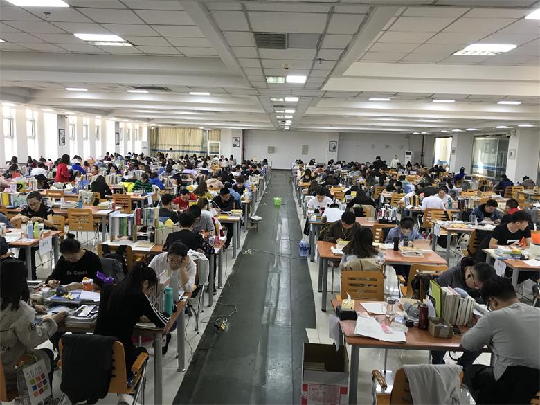考研生在自习室埋头苦学