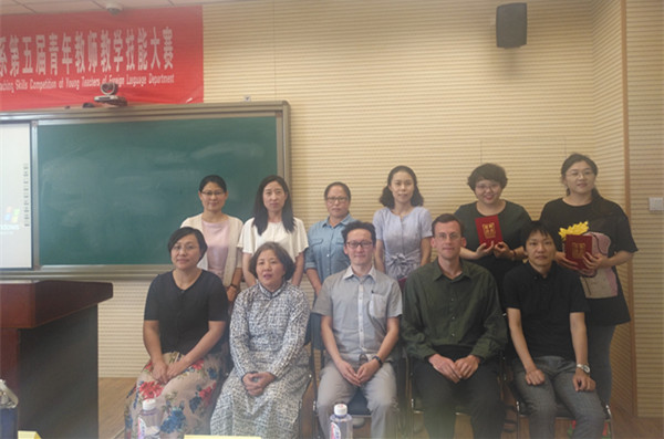 第二阶段为青年教师教学技能大赛。5月25日14时在综合楼802录播室举行了外语系第五届青年教师教学技能大赛。大赛邀请管理系副主任敖特根苏布德博士、蒙古语言文学系王桂荣教授、内蒙古师范大学物理与电子信息学院研究员阿拉腾宝力格博士、日籍教师丰岛高德、美籍教师乔纳森担任评委。参赛教师全部采用课件授课,分别完成了5-10分钟的说课环节和13-15分钟的授课环节。比赛历时三个小时,6位参赛教师依次展示了各自的教学特色和教学技能。他们流畅的语言表达、丰富的信息化教学手段、灵活多样的教学方法给现场的评委和老师们留下了深刻的印象,充分体现了青年教师对课程的理解,展示出青年教师积极向上、拼搏进取的精神风貌。赛后,敖特根苏布德评委从教学内容、教学组织、语言教态、教学特色、教学反思等方面对参赛教师的个人表现进行了中肯的点评,以帮助青年教师进一步成长。最终高乌兰老师荣获一等奖;吴丹、乌哲斯古楞两位老师荣获二等奖;乌优、李培云、白红梅三位老师获三等奖。(外语系供稿)