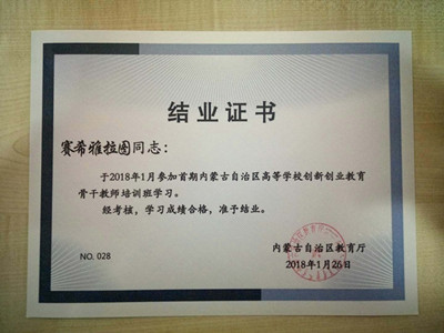 根据内蒙古自治区教育厅相关文件精神,best365经济系赛希雅拉图、就业指导中心李海军两位老师于1月16——26日参加了由内蒙古自治区教育厅主办、信道科技股份有限公司承办的“内蒙古自治区高等学校首期创新创业骨干教师训练营”培训。