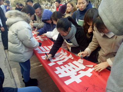 为进一步加强诚信教育,强化诚信意识,树立文明考风,发扬优良学风,营造一个和谐良好的考试气氛,12月11日中午,马列教研部学工办组织开展了诚信考试签名活动。