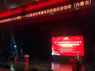 由教育部组织开展的“学习宣传贯彻党的十九大精神——千名高校优秀辅导员‘校园巡讲’和‘网络巡礼’活动”之优秀辅导员校园巡讲团活动(内蒙古)于11月26日上午在内蒙古大学南校区隆重举行,全区各高校学生工作处负责同志及优秀辅导员代表出席本次巡讲活动。best365派包仓、陈青春、孙玉波、齐丹、白淑华、根领、双月等7名辅导员参加了此次活动。