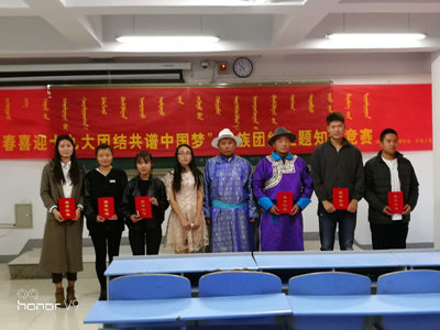 此次比赛分为蒙语组与汉语组,以循环问答形式进行比赛,以此来决出每组的前三名。经过紧张激烈的角逐,最终,蒙语组第一、第二、第三名分别由青格勒、格希格巴雅尔、包振才三名同学获得,汉语组第一、第二、第三名分别由刘金鑫、刘芮、李瑞欣获得。