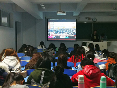 教育系全体学生认真收看了习近平总书记在十九大开幕式上作的主题报告,总书记铿锵有力的发言令每一位收看者肃然起敬,大家都被这庄严的气氛所感染,目不转睛地观看学习视频。