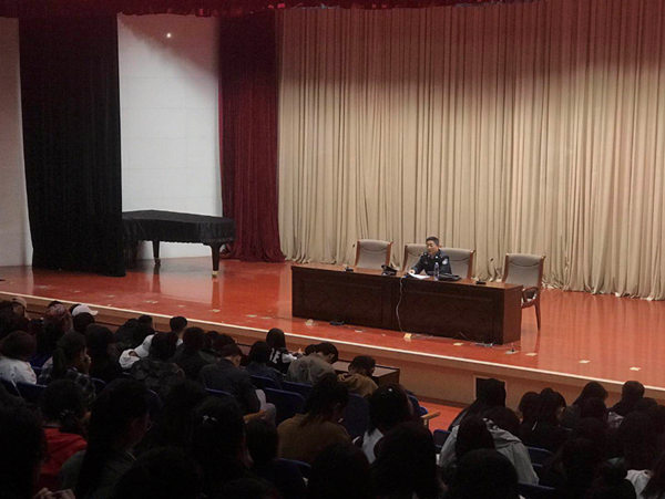 任荣警官围绕大学生学习生活的特点,结合社会近期发生的一系列安全事件告诉同学们,面对诱惑要学会拒绝,面对是非要学会辨别,遭遇安全事件要学会机智处理、突发事件要学会自救,并同班主任、辅导员和保卫处等部门保持联系,遇到问题及时报告。讲座通过剖析同学们日常学习、生活和思想上存在的一些问题,督促同学们要养成好的思想道德品质。尤其对一些平时消极、缺乏积极上进态度的同学,任荣警官结合自身成长的实际例子对他们进行了激励教育,勉励他们树立远大的人生目标,并朝着这个美好的人生目标努力奋斗。