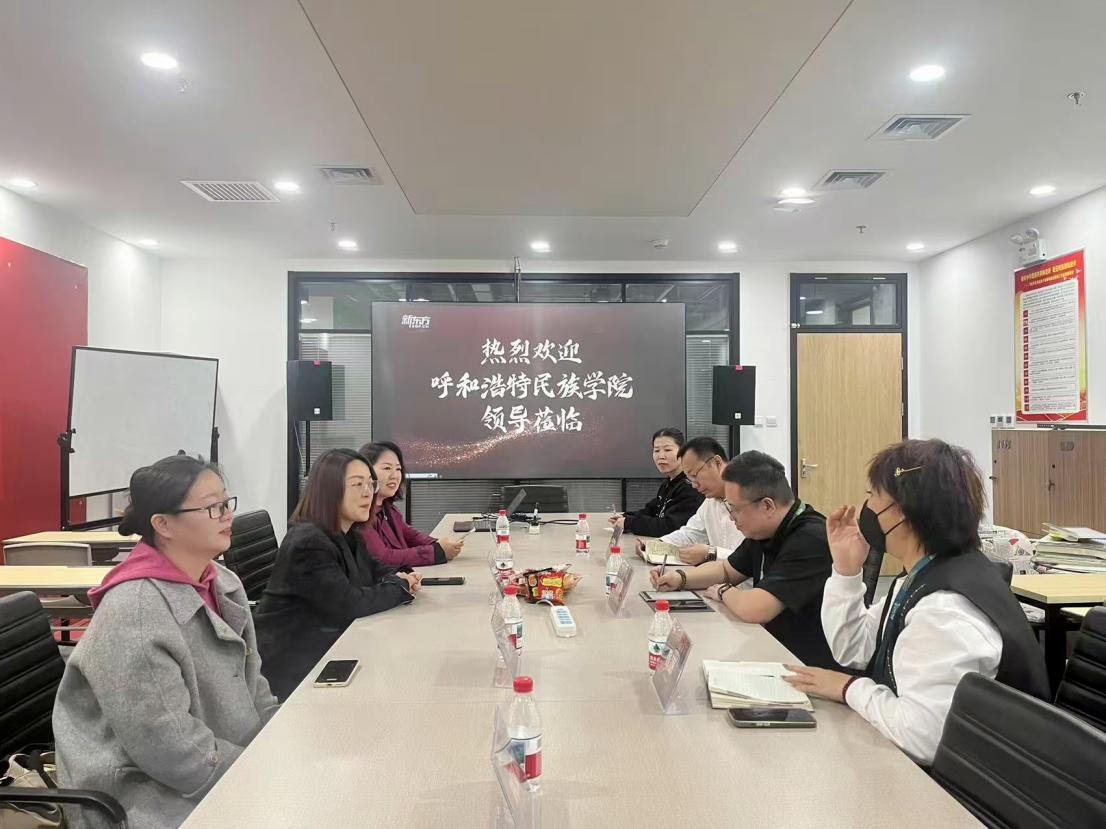 为深化校企合作、精准对接企业用人需求,4月3日,文学院院长高娃、党总支副书记包冬梅、党政办公室副主任马欢及教学秘书刘丽颖一行前往新东方教育科技集团呼和浩特分公司,与企业人力总监杨佩、市场营销总监杨丽、综合行政总监宋冀辰举行座谈交流,探讨校企合作与人才培养新路径。
