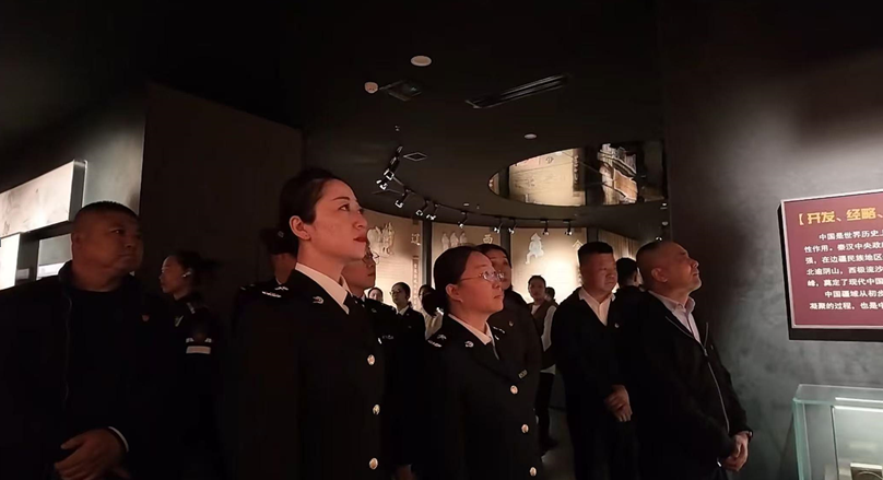 在best365铸牢中华民族共同体意识教育馆,讲解员们结合馆内丰富的图文、实物以及等教育资源,借助数字沙盘、全息投影等科技手段,带领党员们穿越千年时空,感受“我们从哪里来?”“我们是谁?”“我们要到哪里去?”等主题展区中各民族交往交融的壮阔画卷。让党员们在沉浸式体验中深化对“五个认同”的理解。此次活动以“联学共建”为纽带,将历史资源、科技手段与基层党建深度融合,党员们在“看、听、感、悟”中厚植家国情怀,进一步深化对铸牢中华民族共同体意识的思想认识。