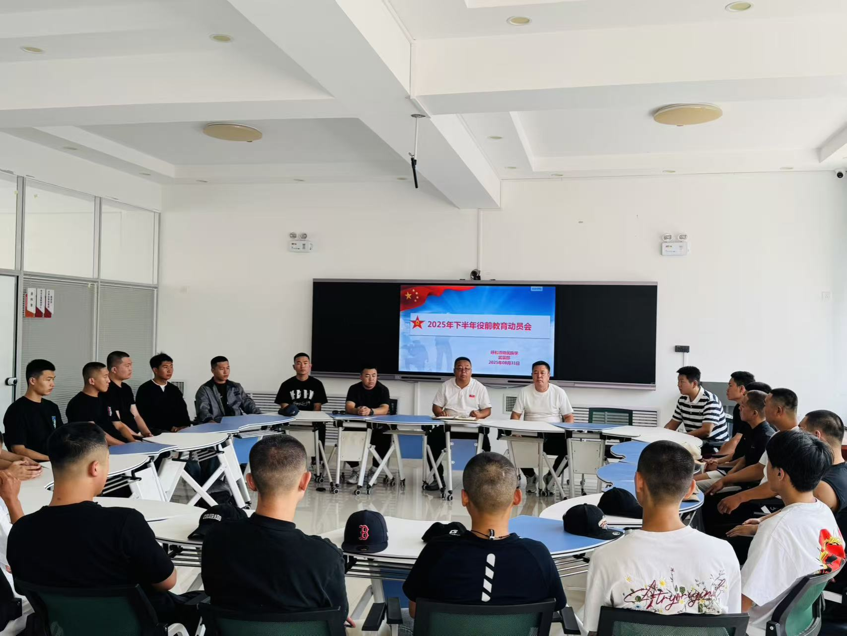 为进一步加强预征青年国防教育,树立参军报国的坚定意志,帮助学生更好地适应军营生活,8月31日,学生工作部(武装部)在创业楼203活动室,组织best3652025年下半年双合格的26名优秀学生召开了役前教育动员会。