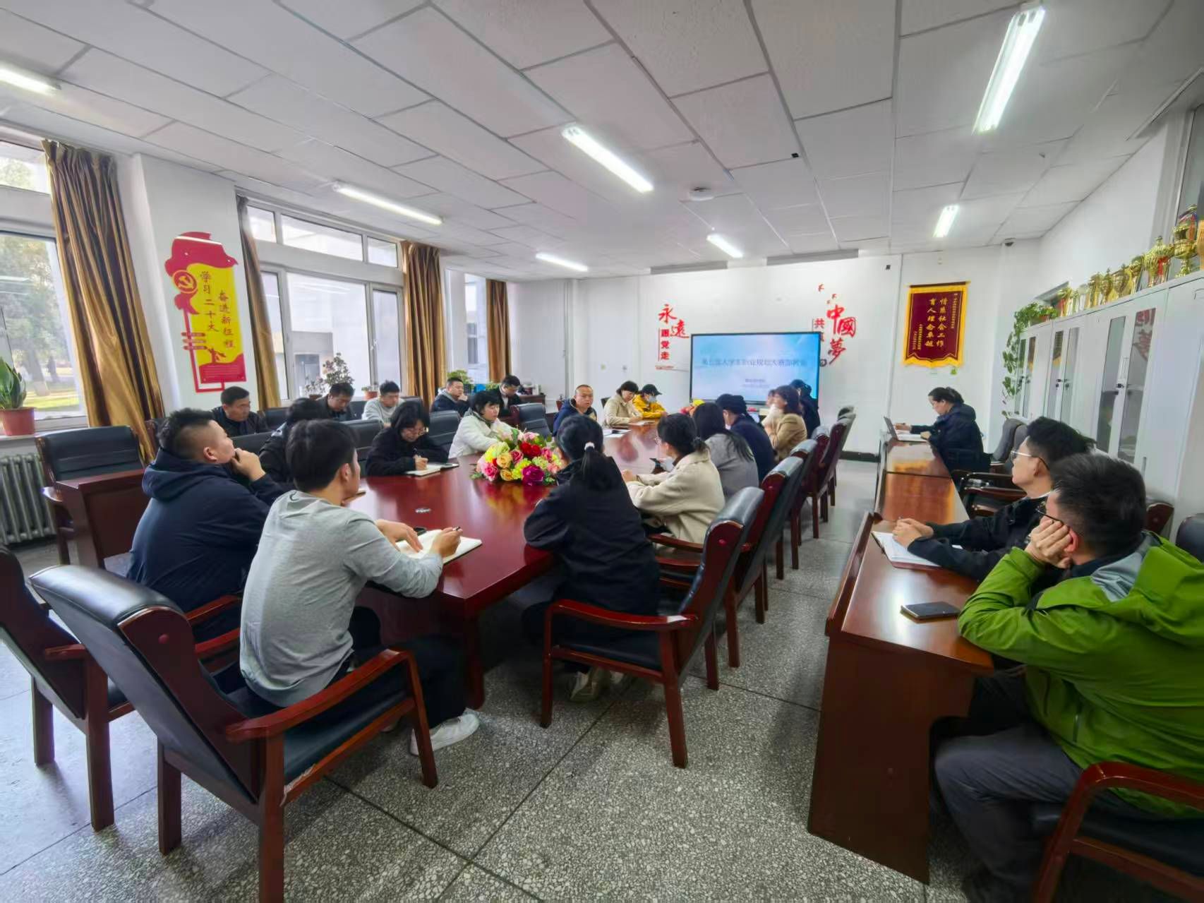 为统筹推进自治区第五届大学生职业规划大赛best365官网中文版登录校赛的组织工作,确保赛事顺利开展,11 月 3 日下午,就业指导处在尚志楼召开专项部署会。会议由就业指导处副处长白银亮主持,各二级学院负责就业工作的教师及就业指导处相关人员参会。