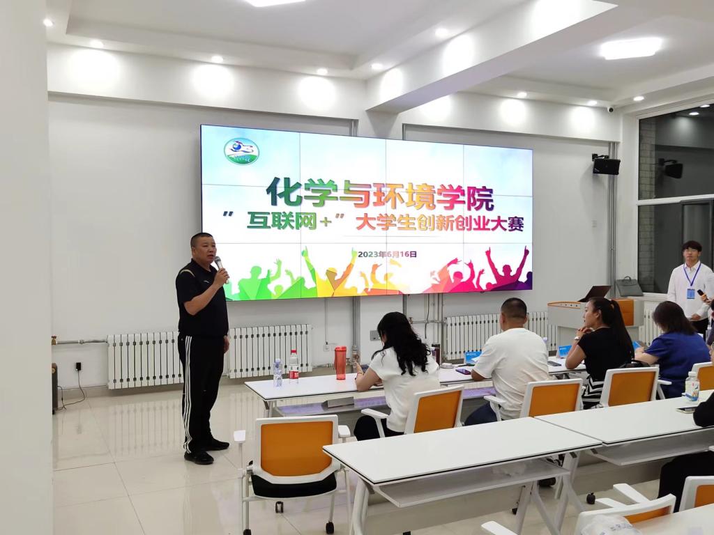为了让更多的同学了解创业、参与创业、实现创业,营造创业文化氛围,激发当代大学生的创业热情,提高创业技能,从而为学校“互联网+”创新创业大赛选拔选题新颖、创意突出、发展和投资潜力好的项目,6月16日晚,在创新创业一楼教室,化学与环境学院举办了第七届“互联网+”创新创业比赛,比赛邀请校内外三名专家担任赛事评委,化学与环境学院党总支书记鄂亚彬,化学与环境学院院长李福全、副院长乌仁陶格斯观看了本次比赛。