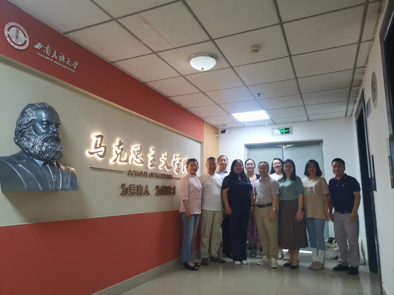 为深入推进习近平新时代中国特色社会主义思想主题教育,推动思想政治理论课教育教学改革和发展,马克思主义学院副院长赵梅兰带领思政课教师一行7人,赴西南民族大学马克思主义学院围绕学科建设、思政课教学改革,就人才培养等问题开展调研。 西南民族大学马克思主义学院刘松涛院长介绍思想政治理论课专题式教学改革和实践教学探索、学科建设、团队建设情况,周玉副院长介绍其研究生招生及培养情况,并讨论双方研究生培养方面合作共赢意向。
