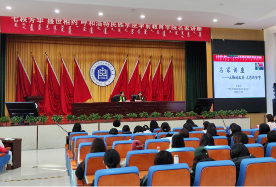 为引导学前教育学院师生铸牢中华民族共同体意识,提高学生的专业认同感,12月7日下午,我院邀请全国民族团结进步模范个人、呼和浩特蒙古族第二幼儿园园长吴海棠,在学术报告厅开展“无悔的选择,无怨的坚守”主题讲座,讲座以线上线下结合的方式进行,学前教育学院书记娜仁其木格,副院长其其格,副院长朱乌英嘎以及学院全体师生参加了本次讲座,讲座由其其格主持。