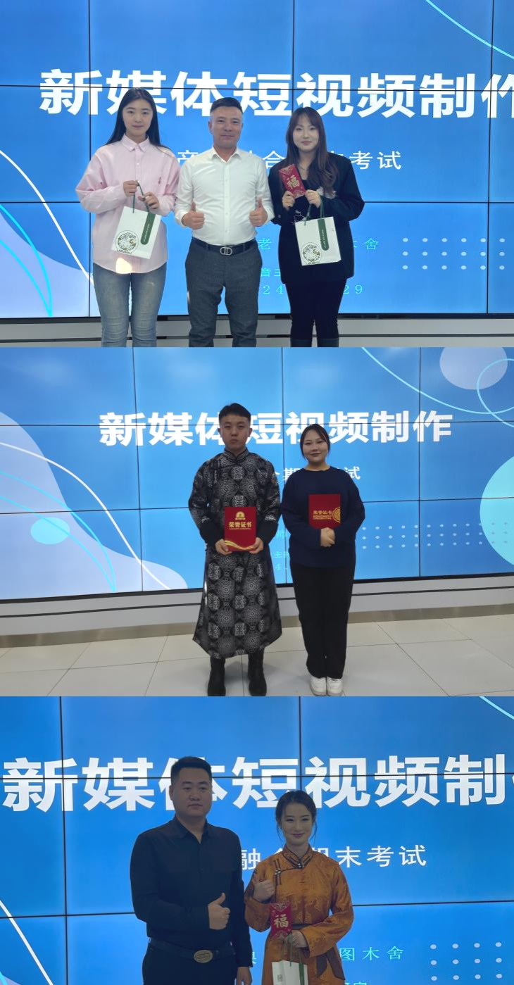 为深化校企合作、推进产教融合,提升教育质量与人才培养水平,11月29日,新闻传媒学院2022级播音与主持艺术班《新媒体短视频制作》产教融合期末考试在都林楼501教室举行,学校党委委员、组织部部长吴阿古拉,教务处处长肖查娜,新闻传媒学院党总支书记苏伦高娃,院长额尔敦毕力格,党总支副书记王丽,副院长安迎春现场观看。播音与主持艺术教研室主任乌日更照来与相关企业代表担任评委。
