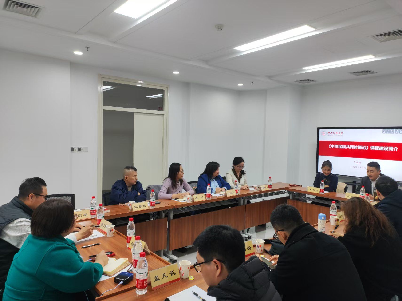 调研组一行现场聆听了中央民族大学马克思主义学院院长孔新峰、马克思主义学院中华民族共同体概论教研室主任王冬丽二位老师的《中华民族共同体概论》课程。