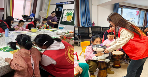 活动中,志愿者们根据孩子们的兴趣与特长,精心设计了音乐与绘画两个互动环节。在音乐活动中,孩子们手持各种乐器,鼓声在志愿者的引导下欢快地响起,整个活动现场充满了温馨与欢乐。在绘画活动中,志愿者们鼓励孩子们放飞想象,用五彩斑斓的画笔描绘出自己心中的美好世界。活动结束后,志愿者们将精心准备的学习用品、玩具和生活用品等捐赠物品送到孩子们手中。