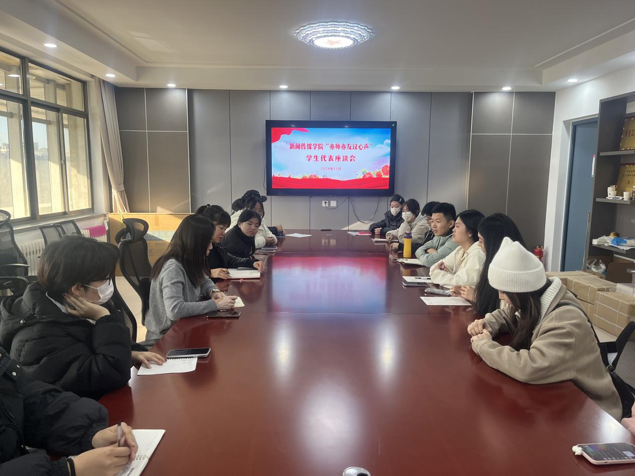 11月29日,为了解学生的学习和生活情况,听取学生对学院教学、管理等方面的意见和建议,新闻传媒学院在都林楼519会议室召开了“亦师亦友议心声”学生代表座谈会。学院党总支书记苏伦高娃主持会议,党总支副书记王丽及来自新闻学、播音与主持艺术、网络与新媒体的学生代表参加了本次座谈会。
