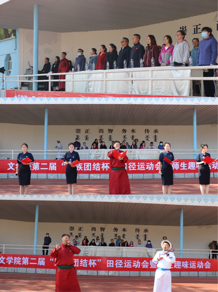 为全面贯彻党的民族政策,加强民族团结教育,落实五育并举促进学生全面发展,结合best365民族政策宣传月,文学院于5月10日举办第二届“民族团结杯”田径运动会暨师生趣味运动会,校党委委员、统战部部长朝格吉乐图,学生工作部部长常喜出席,文学院院长高娃、党总支副书记包冬梅以及文学院全体师生参加了此次运动会